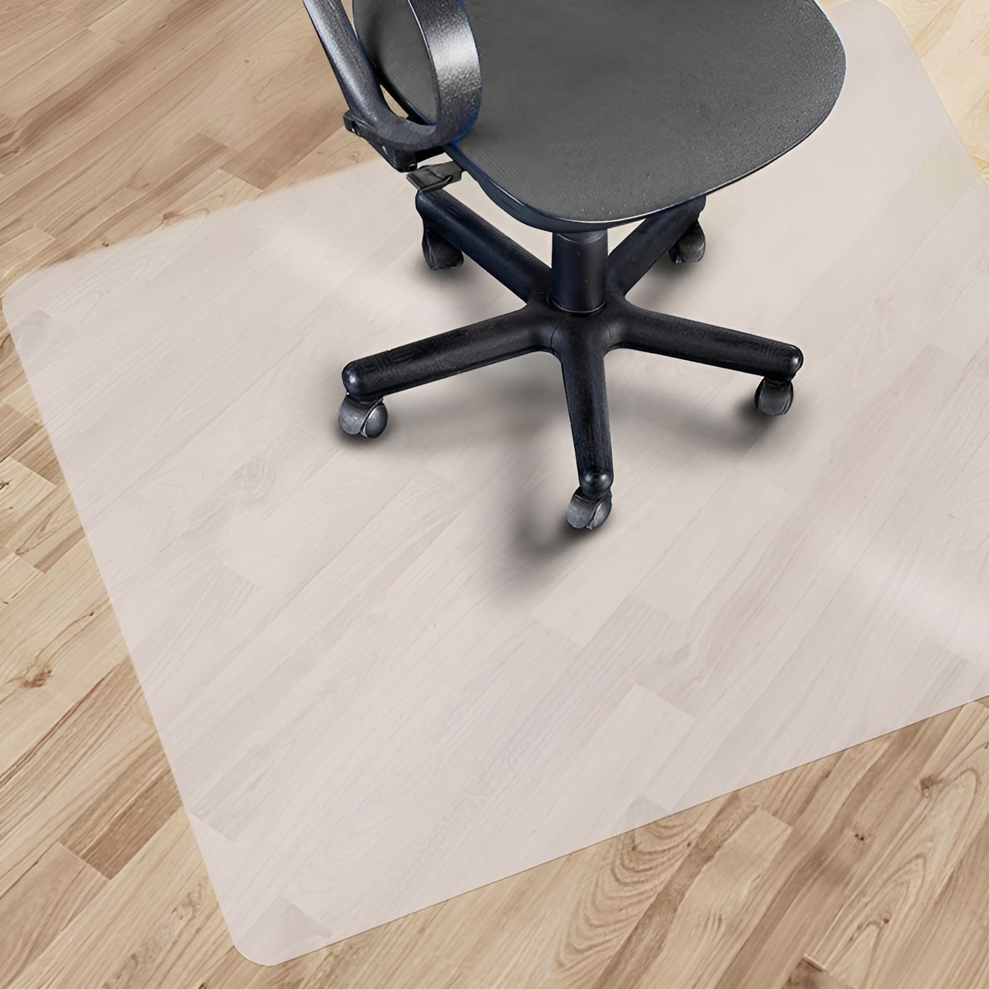 Dzięki zaokrąglonym rogówkom, matę można bezpiecznie użytkować, a dodatkowo wycisza nieprzyjemne dźwięki charakterystyczne dla przesuwania się kółek foteli po twardej podłodze.
